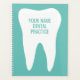 Dental practice planner book with white molar tooth design. Professional dentistry clinic and dental practice supplies. Personalize with (company) name. White and teal blue or custom colour logo.