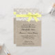 Cette invitation personnalisée à un mariage est la combinaison parfaite de tradition et de tendance. Le arrière - plan aux allures de burlap est parfait pour un mariage à thème rustique ou vintage et l'accent dentelle ajoute une touche classique et romantique. Coordonnées avec la collection complète de dates de sauvegarde, cartes RSVP, poste personnalisé, et plus encore! Envoyez-moi un e-mail pour des couleurs personnalisées ! REMARQUE - Il s'agit d'une image de haute qualité de burlap, dentelle et ruban; cette invitation ne contient pas de burlap, dentelle ou ruban.Merci !