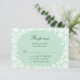 Des flocons de neige délicats dans un motif en dentelle, sur un arrière - plan à la menthe glacée, mettent en valeur cette RSVP de coordination pour la dentelle d'hiver sur Faire-part de mariage de menthe. Il est montré sur le papier de base; cependant, je recommande le poids et la texture du papier de lin, ou la finition brillante du papier de glace métallique pour l'impression.