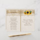 Dentelle blanche élégante avec ruban et tournesol sur le programme de mariage plié burlap. Il présente de la dentelle blanche sur un burlap naturel beige avec deux rubans de satin croisés et des tournesols. Texte en marron. Notez que dentelle, burlap et tournesols sont tous "imprimés" et non de vrais tissus ou fleurs. Vous devrez plier dans le centre pour avoir un programme plié. Choisissez seulement le type de papier de valeur comme il se plie bien.