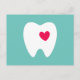 Dentist appointment reminder postcard featuring a white tooth with a red heart on a teal background. A modern and fun design, perfect for reminding your customers to schedule their next appointment. Also available in other colours.