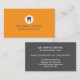 Modern and classy, orange and dark grey business card or profile card featuring a grey tooth logo on a white circle. Customizable text areas for, name, title or clinic, phone number, address, e-mail etc. Elegant and contemporary design suitable for dentists, orthodontists, dental hygienists and assistants and anyone working with teeth in any form.