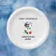 Do you know a hard working dental school student who is about to graduate and become a dentist? This funny plate has a dinosaur with a tooth brush and a graduation cap. The text says, "Roar!" is dinosaur for "Congratulations, Amanda.", but the text can be changed and personalized to fit your needs!
