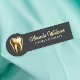 Elegant, professional, and modern dentist name tag features a gold tooth logo on a dark background, displaying your name and title prominently. Perfect for any dental clinic, this name tag ensures a sophisticated and cohesive look for your team. Font and background colour can be customized.