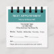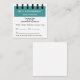 Dentist office appointment reminder business cards for a Dental practice in simple design in teal and white with appointment template incorporated into the design to look like a notebook reminder. Printed on square format business card style for a unique and easy to find size.