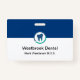 Budget friendly Dentist office staff name badges with dental logo template you can use on our tags or replace with your own dentistry industry logo. Replace the name and employee name templates with your own. Presented with a clip attachment and printed on both sides.