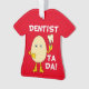 Le texte dentiste et la guêpe tenant triomphalement une grande dent haut, et les mots "Ta Da !", est un dessin humoristique pour les dentistes, chirurgiens oraux, endodontistes et étudiants en médecine dentaire à l'école, anniversaires, vacances et remise des diplômes.