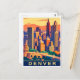 Denver travel postcard. View on the city skyline in vibrant, orange colours.