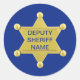 This blue sticker is decorated with a gold sheriff 's six pointed star badge and can be customized with a name.