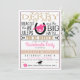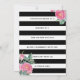 This Derby themed party invitation has a chic look using classic graphics and modern typography. In colours of soft pink, antique gold and black, the front wording reads: "Talk Derby to me" followed by "Break out the mint juleps and the big hats...you're invited!" The lower half of the front is fully customizable with your own party information, just use the easy, provided templates to personalize. The back side features a wide stripe pattern in black and white with feminine pink roses peeking from two corners, adding a softer girly look. The back side has more text templates where you can further customize with more party details if desired.