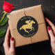 Round stickers feature a faux gold glitter racehorse and jockey on any colour background - we show black. A fun way to dress up your party favours, party decor, table, invitations and more. Use for a Derby party, a Derby bridal shower party, a birthday party or any occasion. MATCHING items in our collection.
