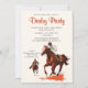 Modern Horse Race Derby Party Invitation with an illustration of a race horse with jockey and striped pattern on the back. All text elements can be changed so this design can be used for other events too: classy equestrian wedding invitation, horse birthday party, derby watch party, horse barn opening and more. Background, colour of the illustration and text colours can be changed using the design tool!