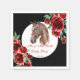 Derby party horse equestrian party personalized napkins template. Simple, classical horse portrait with red roses flowers.