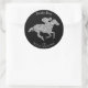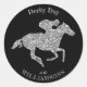 Round stickers feature a faux silver glitter racehorse and jockey on any colour background - we show black. A fun way to dress up your party favours, party decor, table, invitations and more. Use for a Derby party, a Derby bridal shower party, a birthday party or any occasion. MATCHING items in our collection.