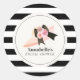 This chic and elegant bridal shower sticker features a a big derby style pink hat with roses and a black bow/ribbon on a white background with black stripes. Personalize for your needs. You can find more matching products at my store.