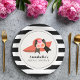 This elegant bridal shower paper plate features a a big derby style red hat with roses and a black bow/ribbon on a white background with black stripes. Personalize for your needs. You can find more matching products at my store.