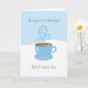 La carte d'anniversaire mignonne contient une boisson en latte tendance sur un arrière - plan ondulé bleu et blanc à la vapeur bleue bouclée. Illustration graphique et astucieuse torsion sur l'expression "lottie da"