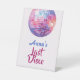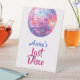 "Signe du piédestal de la fête ! Doté d'une boule de disco rose vibrante et d'un lettrage rétro "Dernier Disco", ce panneau donne le ton parfait pour votre célébration sur le thème de la discothèque. Que ce soit pour saluer les fêtards à l'entrée ou ajouter du flair à votre décor, ce guéridon est un élément central glamour qui brille brillamment toute la nuit. Un must pour le dernier centre disco de la mariée, élégant, accrocheur et plein de plaisir !"