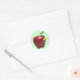 Une pomme très rouge avec un ver jaune et un ver vert mignon. On sort d'un petit trou sur le fruit.