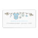 Élégant étiquette de BABY SHOWER avec vêtements bleu bébé. Disponible également en rose. Cliquez sur le bouton Customiser pour remplacer les informations du étiquette par vos informations. Cette conception fait partie d'une collection, veuillez visiter notre magasin pour d'autres objets correspondants