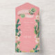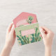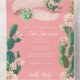This cactus garden invitation is the perfect way to announce your desert wedding! It features a prickly pear cactus with pink blossoms. All the important wedding details can be personalized. Colours include green, pink, white and black.