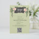 This cactus garden response card features a prickly pear cactus with pink blossoms. All the important wedding details can be edited. Colours include green, pink, white and black. The back has an artistic address that really makes a statement. There is a QR code that you can link up to your wedding website to make it easier for your guests to respond.