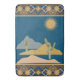 Desert Cactus Scene. Beautiful calming scene of desert scene with cactus with geometric pattern at top and bottom of bath mat in Blue, Gold, Linen. Backed in various shades to suit your home decor or as a gift for someone special. Towels to match.
