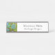 Desert succulent desk name plate, with a bright green prickly pear cactus image on a white background. With elegant black typography lettering, you can add you own information. Great for promoting your landscaping or design business!