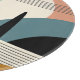 An abstract landscape of a desert scene with lines and shapes in shades of brown, orange, turquoise, beige, tan, and black.