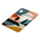 An abstract landscape of a desert scene with lines and shapes in shades of brown, orange, turquoise, beige, tan, and black.