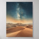 Experience the wonder of the desert beneath a starlit sky with this mesmerizing poster. Painted in soft watercolor tones of warm sand and deep indigo, the artwork captures rolling dunes glowing under the Milky Way. A serene blend of earth and cosmos, it evokes stillness, mystery, and awe. Perfect for bedrooms, living rooms, or meditation spaces, this piece of wall decor is ideal for dreamers, travelers, and lovers of celestial landscapes.