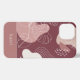Modern boho style design features a background of organic shapes in muted shades of dusty blush pink and desert rose, overlaid with tropical monstera leaf illustrations. Personalize with a name or monogram along the bottom.