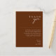 Ce simple désert | Dark Cinnamon carte de remerciements est exactement ce que vous cherchez pour compléter votre mariage boho rustique moderne. Idéal pour une ambiance occidentale minimaliste vintage ou une ambiance bohème automnale rétro. Le script blanc naturel minimal apparaît vraiment avec cet arrière - plan d'automne coloré. Vous pouvez choisir de le garder tel qu'il est ou de le personnaliser avec vos propres oeuvres d'art ou photos. Faites défiler la collection pour sélectionner d'autres objets qui feront chanter votre mariage de automne avec authenticité !
