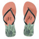 Monogram flip flops, with a green desert succulent design set on a peach background. With black lettering, you can personalize with your own information. Great for adding a botanical style to your wardrobe.