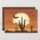 The perfect moving announcement when your final destination is a desert local. The golden-brown invitation features the silhouette of a hawk and desert landscape against a large sun. Design by Vecteezy Desert Scene Illustration.