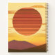 Journal in a retro, minimalist desert sunset over hills, in shades of deep rust orange, golden yellow, and brown, with customizable text