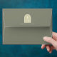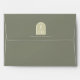 Designed for those who love simplicity with a hint of earthiness, the pieces in this wedding stationery suite are set against arid backgrounds in a serene colour palette that harmonizes with the minimalistic design elements, including understated visuals of desert flora – a muted nod to the quiet splendour of the desert. The coordinating envelope shown here with a gradient watercolor interior and optional dark sage exterior, has a simple arch frame with cactus motif to easily hold your own personalized initials and return address. Search ID1019 to see all the products in this wedding suite.