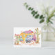 A charming watercolor greeting card features a vintage camper nestled in a serene desert landscape. The camper, painted in soft, sun-faded hues, has rounded corners and retro details that evoke a sense of wanderlust and nostalgia. Surrounding it, gentle washes of sandy beige and warm terracotta form rolling desert ground, dotted with cacti, desert grasses, and a few delicate wildflowers.