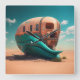 Desert whale house square wall clock