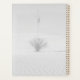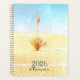 Beautiful calendar planner with a photograph captures a serene desert landscape with rolling white sand dunes under a clear blue sky. A yucca plant stands prominently in the foreground, its spiky leaves and tall stalk adding a touch of green and brown to the otherwise monochromatic scene. The sand dunes exhibit a rippled pattern, created by the wind. In the distance, faint blue mountains can be seen on the horizon.