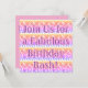 Invitation de fête d'anniversaire colorée et personnalisable. Vous pouvez customiser les mots sur le devant et le dos à ce que vous voulez ou garder les mêmes mots et remplir l'information.