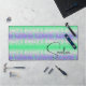 Tapis de bureau blanc ciré réalisé dans un design abstrait floral vert et bleu. Personnalisez le nom au bas du tapis, pour répondre à vos besoins. Super idée cadeau pour elle.