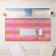 Tapis de bureau blanc en forme de poupée rose et orange, design abstrait floral. Personnalisez le nom en haut du tapis, pour répondre à vos besoins. Super idée cadeau pour elle.