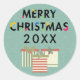 Un joli autocollant de Noël avec un design typographique de style moderne et des graphismes de boîte cadeau. L'extérieur dit "Joyeux Noël 20XX" pour vous de changer votre année préférée