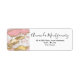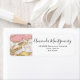 Étiquette de adresse avec un motif de style abstrait. Couches de marbre rose, d'or, d'or rose et de parties scintillant faux or.