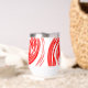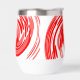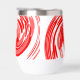 Design tourbillon rouge sur bouteille d'eau.