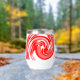 Design tourbillon rouge sur bouteille d'eau