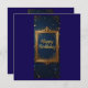 Golden elegance, birthday background, a luxurious design with a golden frame, golden confetti, and "Happy Birthday" in shimmering gold on a navy blue background.