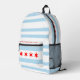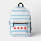 All-over print backpack with the flag of the city of Chicago (largest city in Illinois), white and light blue striped flag with four red stars