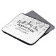 The sleeve is made of nice feeling material and seems very durable. I'm not sure how easy it'll be to clean, but the construction seems sound and the fabric is quick thick. I also like the double zipper. The printing is lovely and appears durable. The white on black contrast is nice, and the design very elegant.